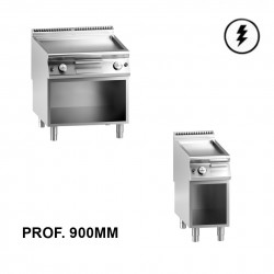 Die Speisen werden auf einer oder einer doppelten Bratplatte zubereitet, die entweder glatt, gerillt oder halb glatt/gerillt ist.