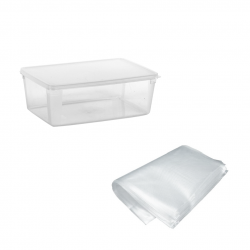 Die Vakuumverpackung der Produkte erfolgt direkt in der Dekompressionskammer mit Hilfe von glatten Beuteln oder mit Hilfe des Zusatzsets, mit dem die Lebensmittel außerhalb der Kammer in Gastronormbehältern verpackt werden können. Das Gerät ermöglicht ein 99%iges Vakuum. In die Dekompressionskammer können ungiftige Polyethylen-Ausgleichsplatten für Lebensmittel und schräge Platten für Flüssigkeiten eingelegt werden, um die leeren Räume in der Kammer zu füllen und die Dicke des Produkts in Verhältnis zum Schweißbalken auszugleichen. Dies ermöglicht ein optimales Vakuumieren.