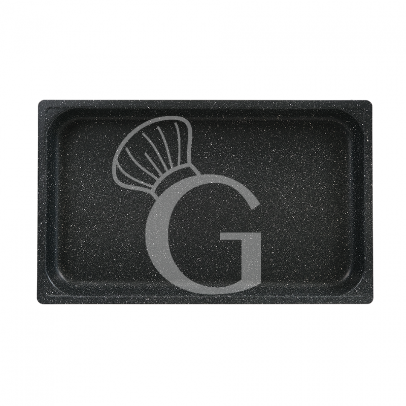 Tatsächlich ist dieses Backblech mit der Legierung 3003 gefertigt, die ein ausgezeichneter Wärmeleiter ist. Das Backclech ist mit einer verstärkten dreilagigen marmorierten Antihaftbeschichtung mit einer Stärke von 1,5 mm ausgestattet.