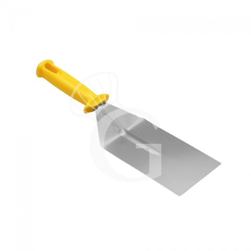 Der Pizzaheber ist aus Edelstahl und besitzt einen ergonomischem Polypropylen-Griff