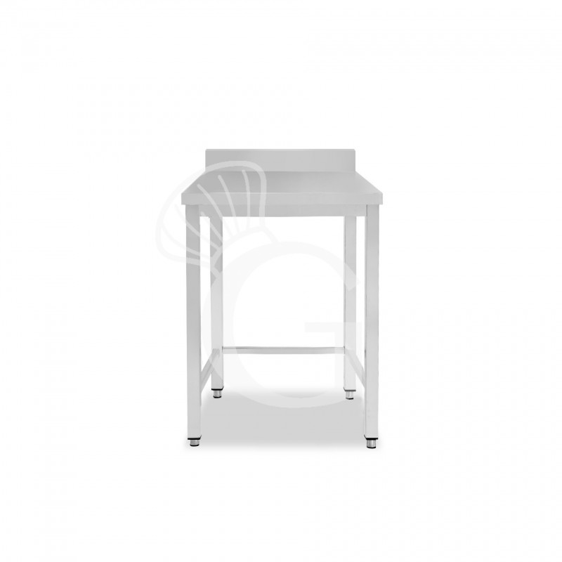 Einfacher Edelstahltisch mit praktischer Aufsatz und Breite 400 mm x Tiefe 800 mm x Höhe 950 mm.