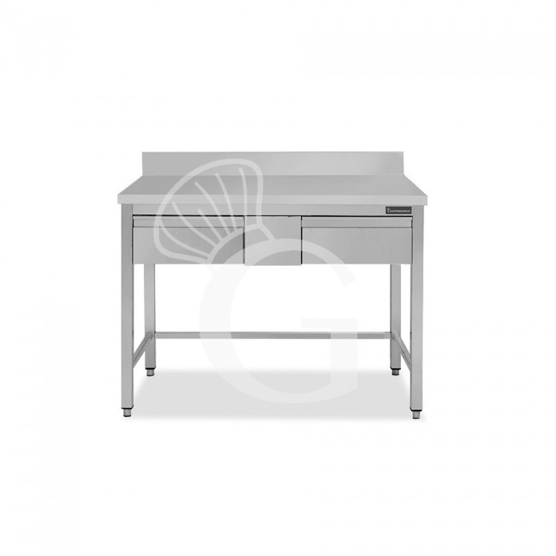 Edelstahltisch, 2 Schubladen, Aufkantung, B 1200 mm x T 800 mm x H 950 mm