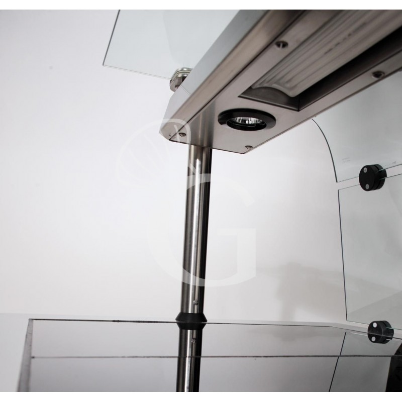 Die Struktur ist aus Edelstahl AISI 304 mit Scotch Brite Schliff und die Beleuchtung erfolgt durch LED-Streifen, die an der Unterseite befestigt sind.
