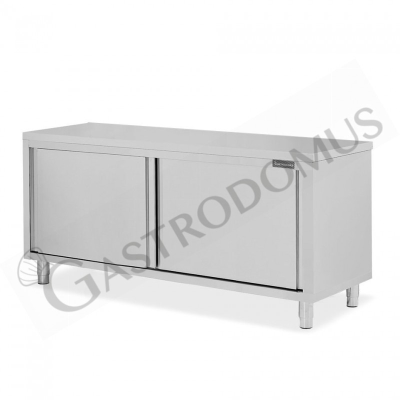 Schranktisch aus Edelstahl 2 Schiebetüren B 2000 mm x T 800 mm x H 850 mm