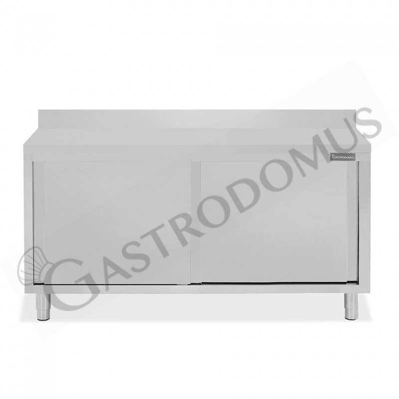Schranktisch aus Edelstahl 2 Schiebetüren Aufsatz B 1600 mm x T 800 mm x H 950 mm