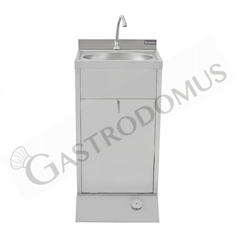 Handwaschbecken, mobil, Edelstahl, Fußbedienung, B 450 mm x T 550 mm x H 855 mm.