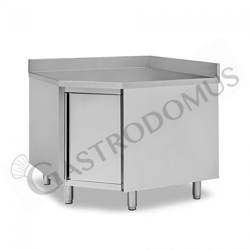 Eckschranktisch aus Edelstahl mit Flügeltür, Aufsatz und Tiefe 800 mm