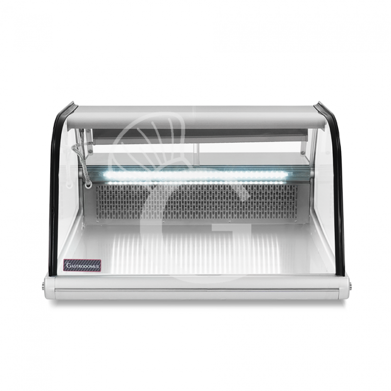 Die Thekenvitrine verfügt über ein gewölbtes Glas- und eine Tür, Schiebetüren und alle 4 Doppel-Anti-Kondensat Glas.