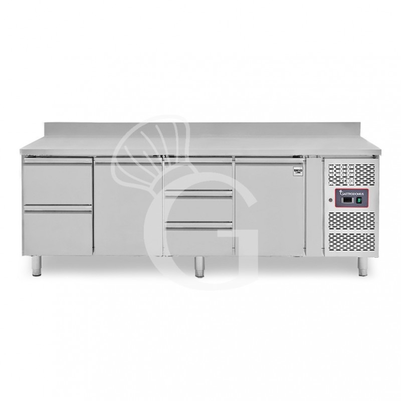 Kühltisch, 2 Türen, 5 Schubladen, Aufkantung, Tiefe 700 mm, -2°C/+8°C