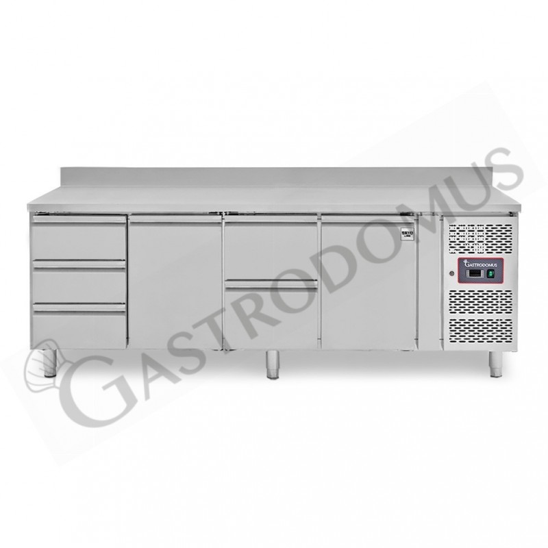 Kühltisch, 2 Türen, 5 Schubladen, Aufkantung, Tiefe 700 mm, -2°C/+8°C