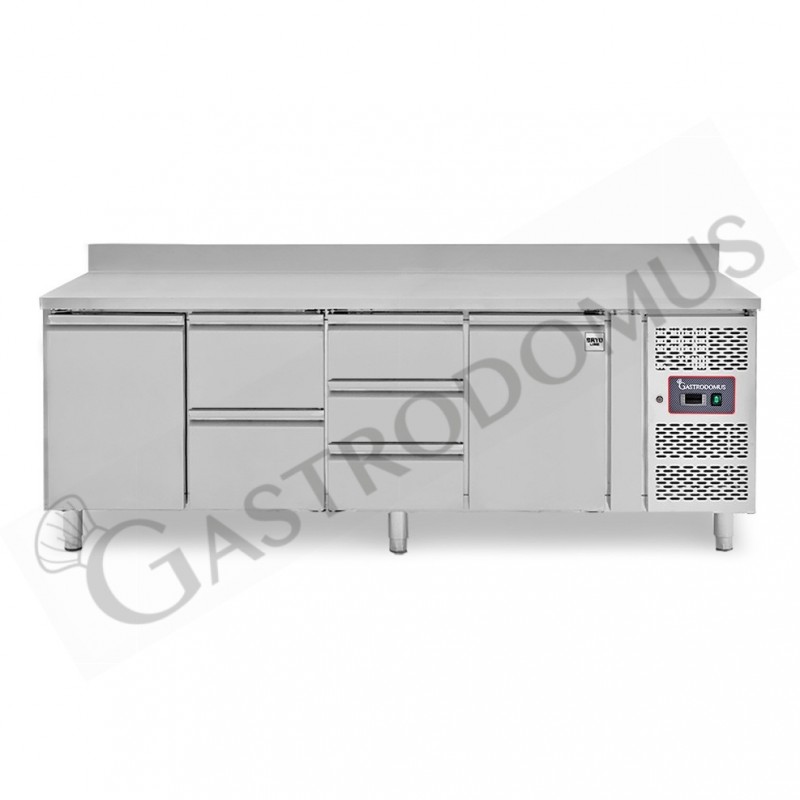Kühltisch, 2 Türen, 5 Schubladen, Aufkantung, Tiefe 700 mm, -2°C/+8°C