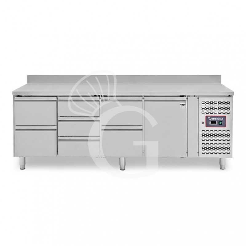 Kühltisch, 1 Tür, 7 Schubladen, Aufkantung, Tiefe 700 mm, -2°C/+8°C