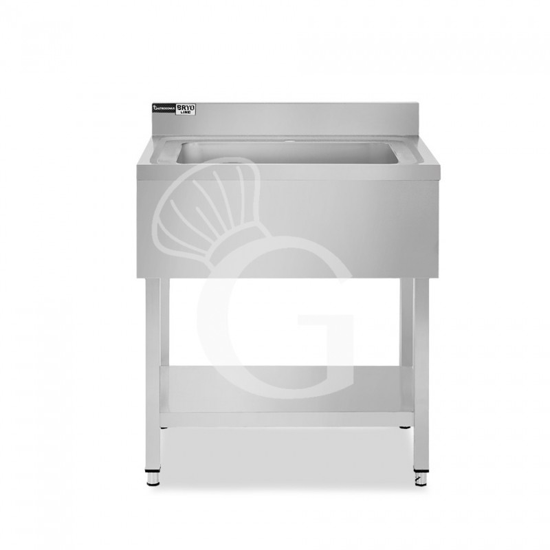 Spülbecken, Edelstahl, Grundboden, Aufkantung, 1 Becken, B 700 x T 700 x H 965 mm, mit Hahnloch Ø 32 mm