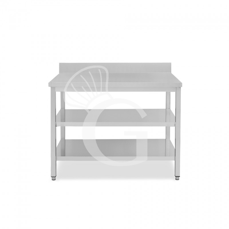 Edelstahltisch, 2 Regalböden, Aufkantung, B 1100 mm X T 700 mm X H 965 mm