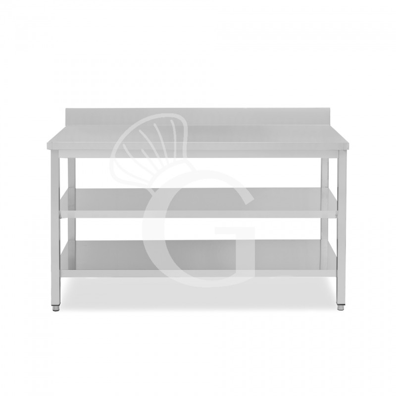 Edelstahltisch, 2 Regalböden, Aufkantung, B 1800 mm X T 800 mm X H 965 mm