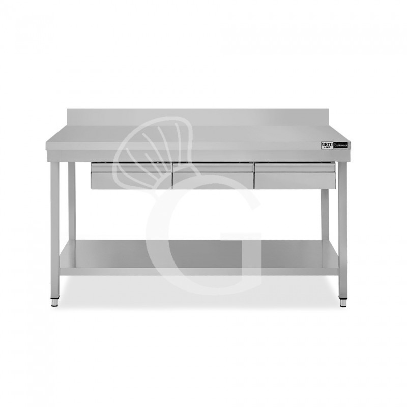 Edelstahltisch, Grundboden, Aufkantung, 3 Schubladen, B 1500 mm X T 600 mm X H 965 mm