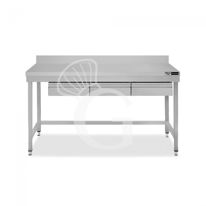 Edelstahltisch, 3 Schubladen, Aufkantung, B 1500 mm X T 800 mm X H 965 mm