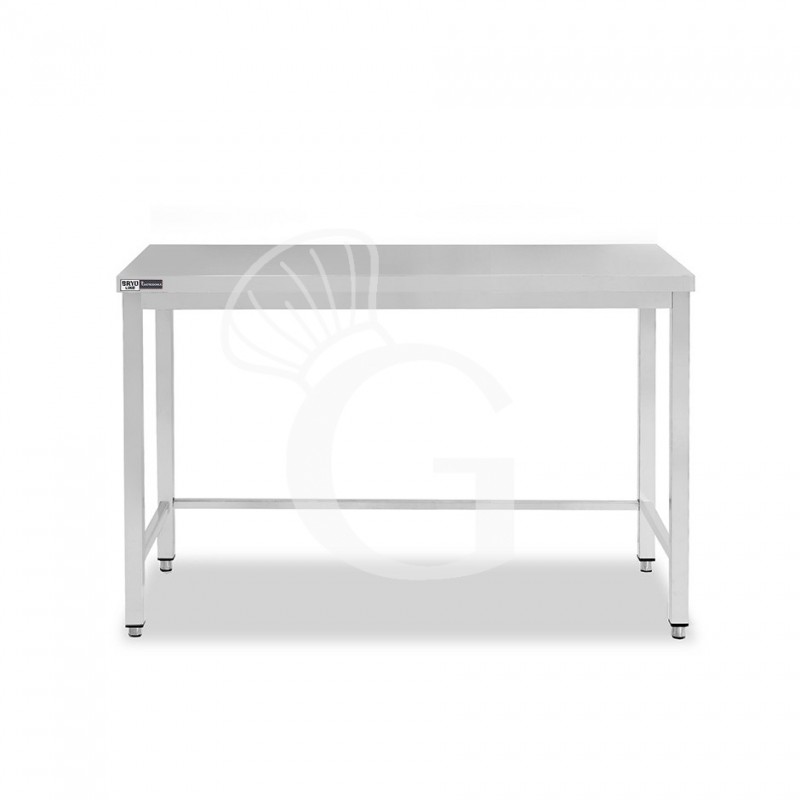 Der robuste Tisch ist aus Edelstahl 18/10. Scotch- Brite Schliff.