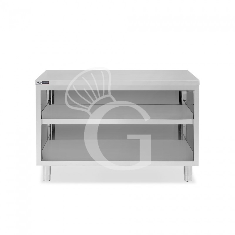 Arbeitsschrank offen, Edelstahl, 2 Regalböden, B 1500 mm x T 700 mm x H 865 mm