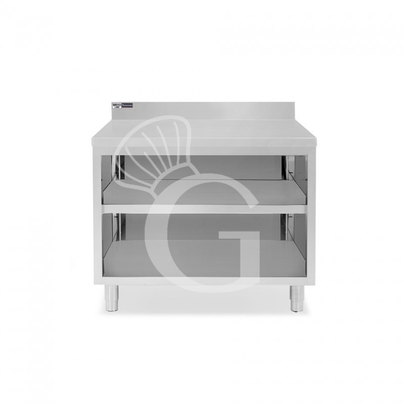 Arbeitsschrank offen, Edelstahl, 2 Regalböden, Aufkantung, B 1100 mm x T 600 mm x H 965 mm