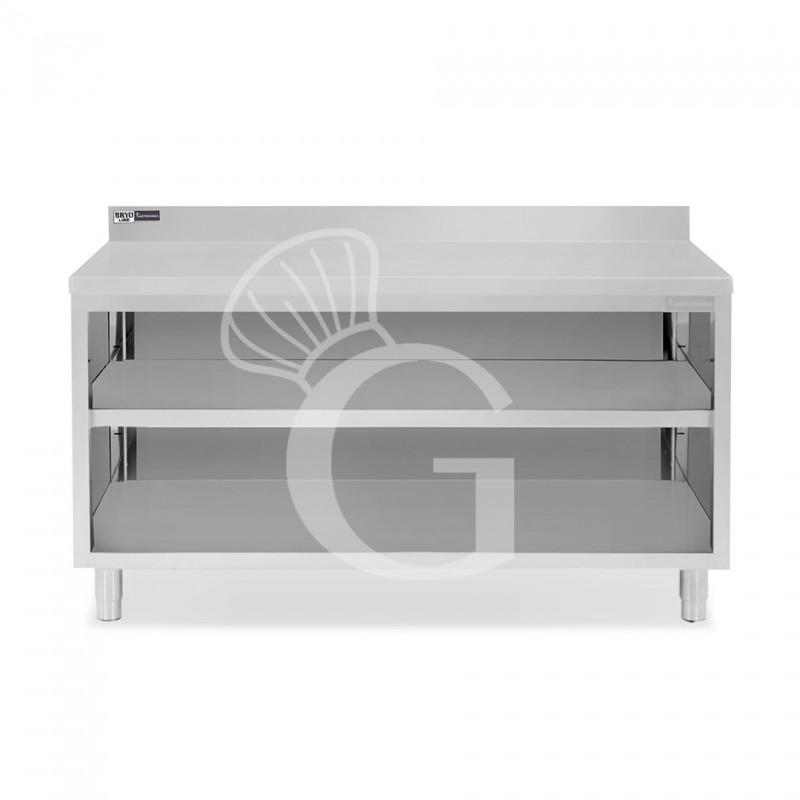 Arbeitsschrank offen, Edelstahl, 2 Regalböden, Aufkantung, B 1800 mm x T 600 mm x H 965 mm