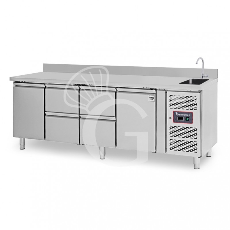 La temperatura è positiva e si attesta in un range tra - 2° C e + 8° C. La temperatura può essere costantemente regolata e controllata grazie a un termostato digitale che inoltre regola anche lo sbrinamento del tavolo.