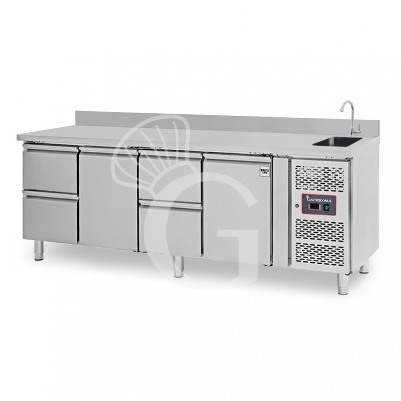 La temperatura è positiva e si attesta in un range tra - 2° C e + 8° C. La temperatura può essere costantemente regolata e controllata grazie a un termostato digitale che inoltre regola anche lo sbrinamento del tavolo.