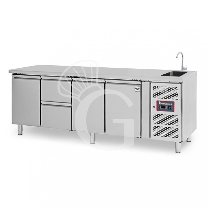 Tavolo refrigerato provvisto di 2 porte, profondità 700 mm, temperatura - 2° C/ + 8° C.