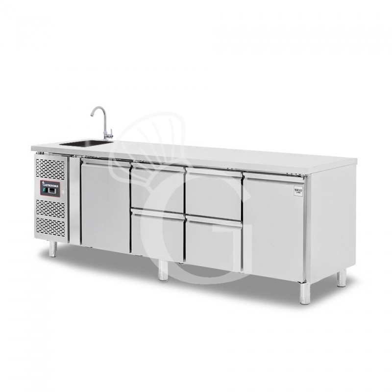 La temperatura è positiva e si attesta in un range tra - 2° C e + 8° C. La temperatura può essere costantemente regolata e controllata grazie a un termostato digitale che inoltre regola anche lo sbrinamento del tavolo.
