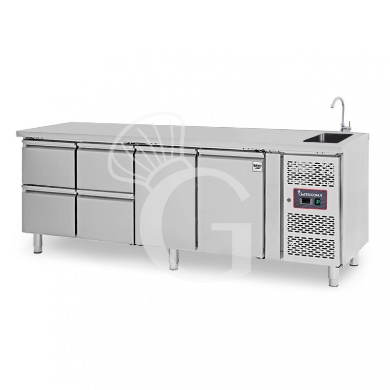 La temperatura è positiva e si attesta in un range tra - 2° C e + 8° C. La temperatura può essere costantemente regolata e controllata grazie a un termostato digitale che inoltre regola anche lo sbrinamento del tavolo.