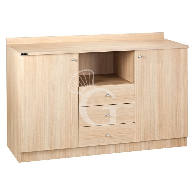 E' dotato di due cassetti portaposate a 3 scomparti, due sportelli e ruote multidirezionali.