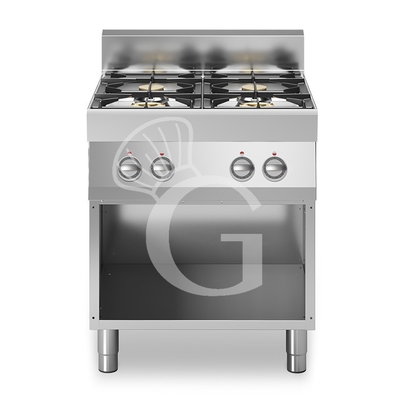 Professioneller Gasherd mit 4 Brenner und offenen Unterbau, Tiefe 700 mm