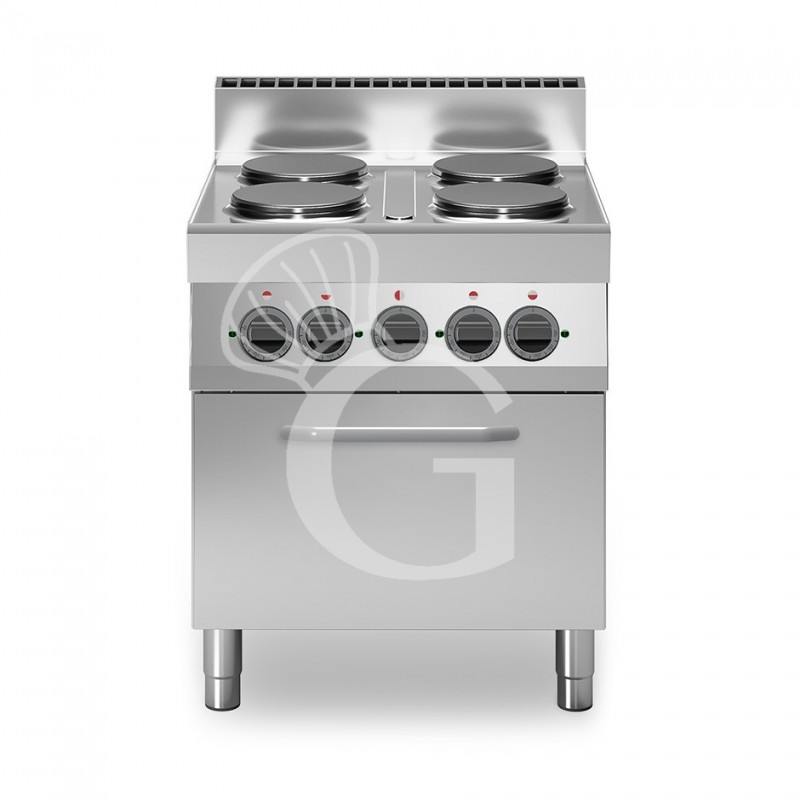 Professioneller Elektroherd mit 4 Kochplatten und Elektrobackofen mit Umluft GN1/1, Tiefe 700 mm