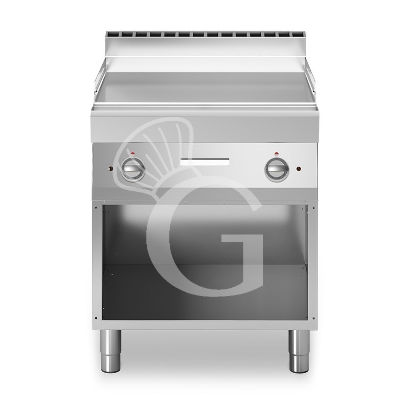 Die Bratplatte mit offenen Unterbau ist ideal für den Gebrauch in der Gastronomie. Sie eignet sich hervorragend für die Zubereitung von Gemüse, Fleisch und Fisch.