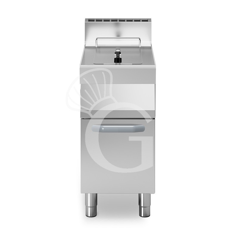 Die Gasfritteuse darf in Restaurants, Hotels und Pizzerien nicht fehlen, denn sie ermöglicht das gleichmäßige Frittieren großer Mengen von Speisen in kurzer Zeit. Die auf einen Schrank montierte Gas-Fritteuse ist praktisch und multifunktional.
