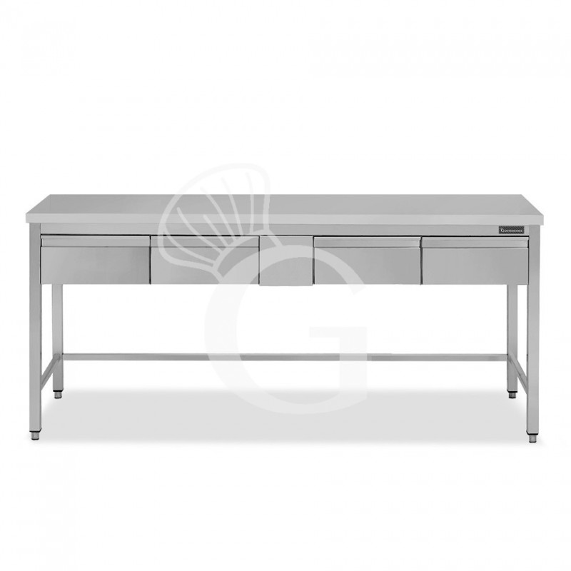 Tavolo semplice in acciaio inox con 4 cassetti e lunghezza 1800 mm x profondità 800 mm x altezza 850 mm.