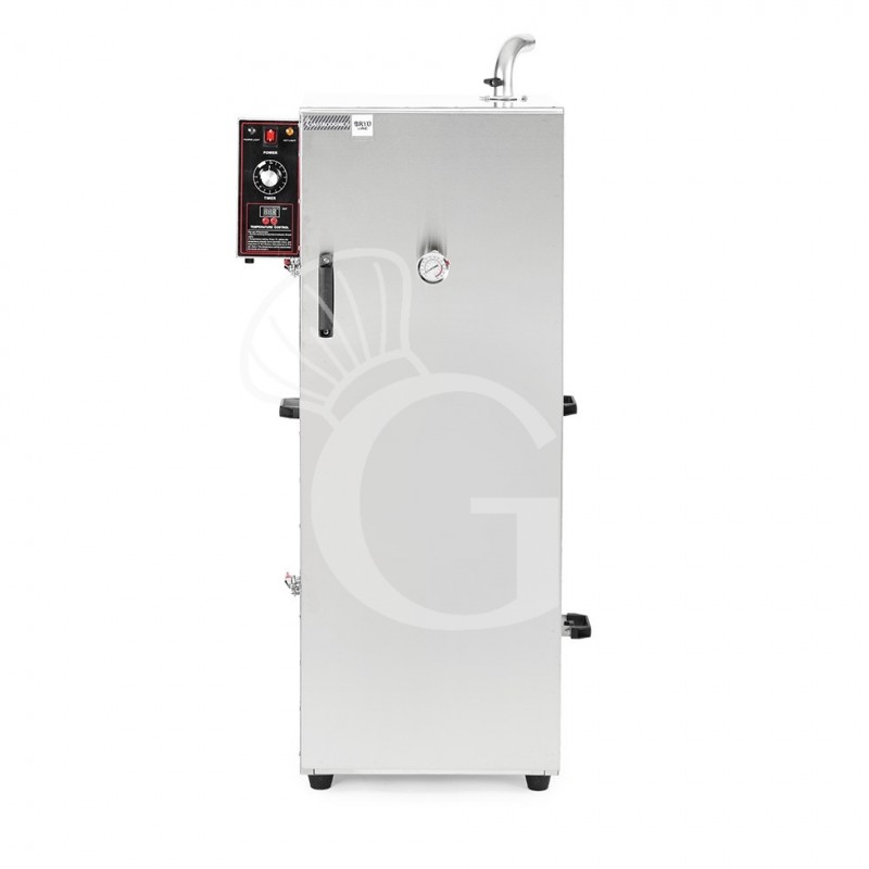 La corretta temperatura all'interno del dispositivo può essere raggiunta grazie al riscaldatore principale (1500 W) e regolata grazie al termostato elettronico. Regolando la griglia di ingresso dell'aria e la valvola del camino è possibile ottenere un'affumicatura ottimale. La temperatura raggiunta all'interno della camera permette anche di utilizzare l'affumicatore come griglia, forno e anche per la cottura lenta.