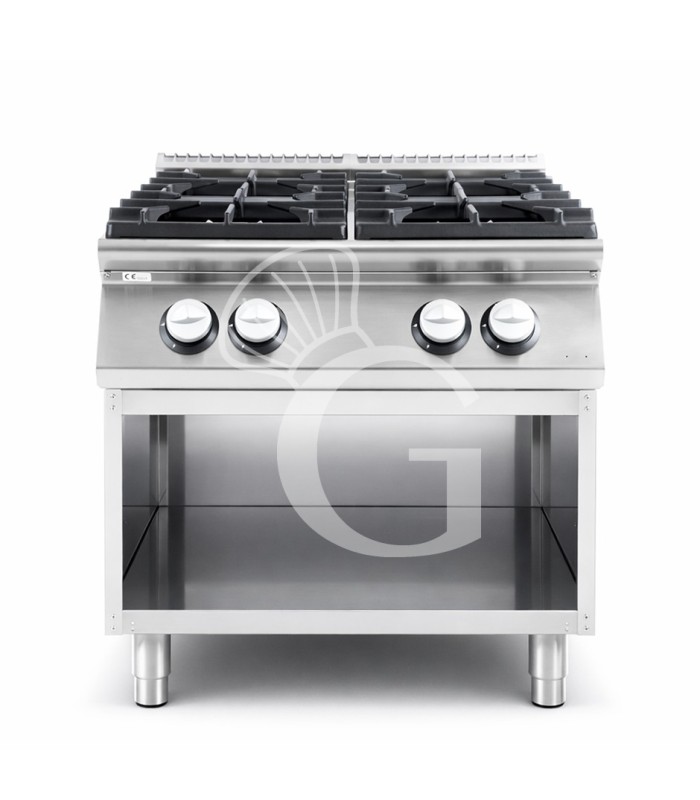 Professioneller Gasherd mit 4 Brenner und offenen Unterbau, Tiefe 900 mm