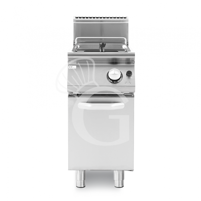 Die Gasfritteuse darf in Restaurants, Hotels und Pizzerien nicht fehlen, denn sie ermöglicht das gleichmäßige Frittieren großer Mengen von Speisen in kurzer Zeit. Die auf einen Schrank montierte Gas-Fritteuse ist praktisch und multifunktional.