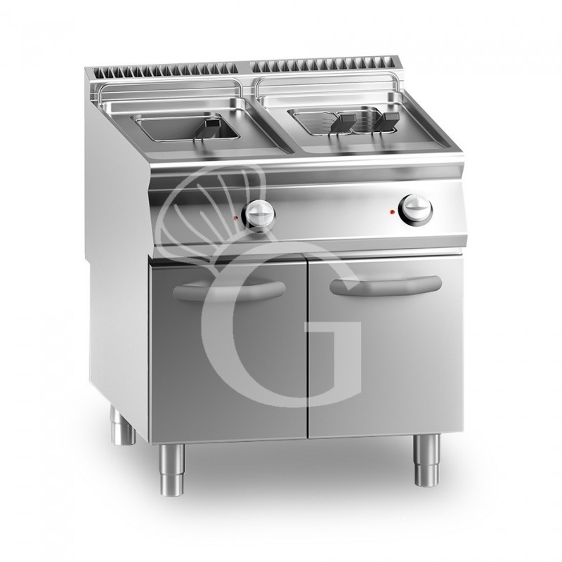 Profi Elektro-Fritteuse mit 2 Becken (2 x 15 Liter) und Schrank, Standgerät, Leistung 20,4 kW – dreiphasig