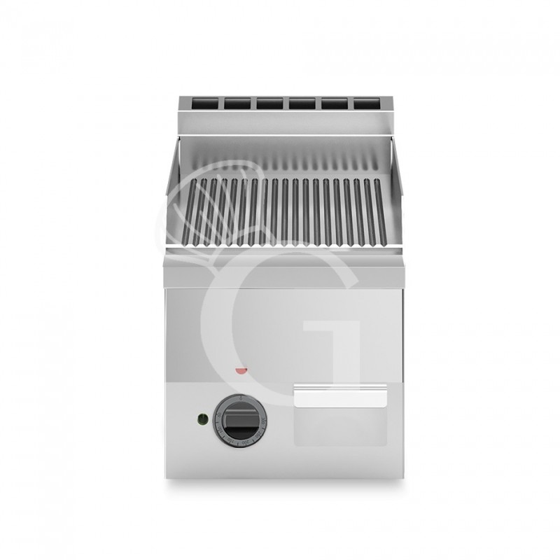 Elektro Bratplatte - gerillt, verchromt, Tischgerät, 1 Kochzone, T 600 mm, 3000 W, dreiphasig