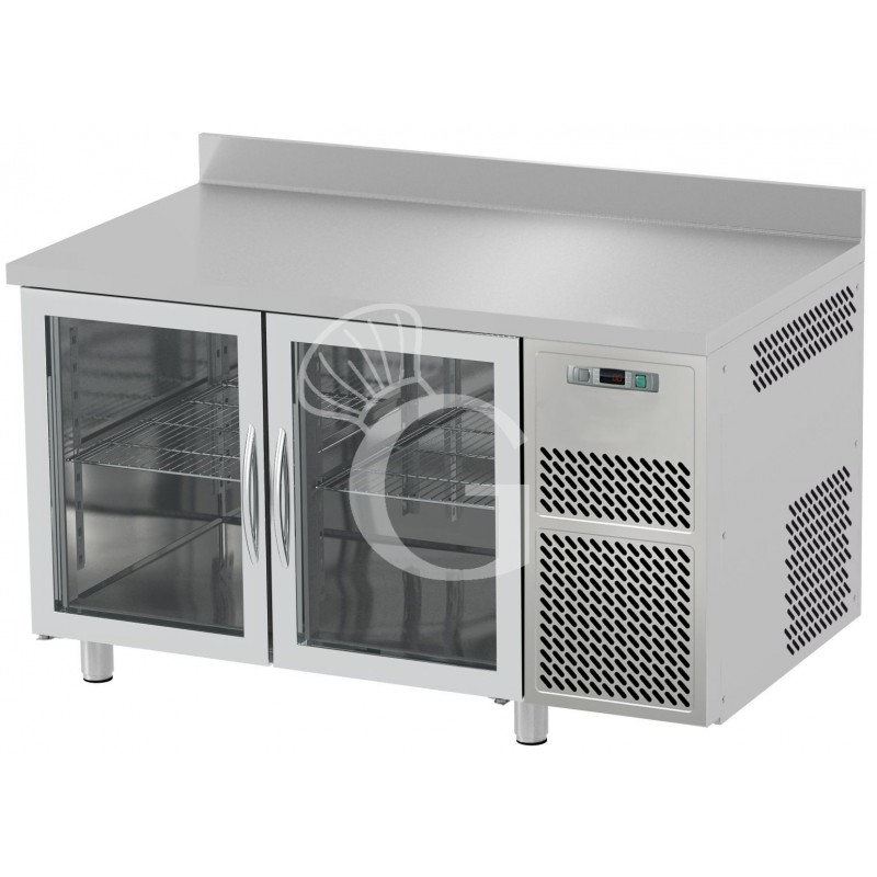 Kühltisch, 2 Glastüren, Aufkantung, Tiefe 700 mm, 0°C/+10°C, Edelstahl