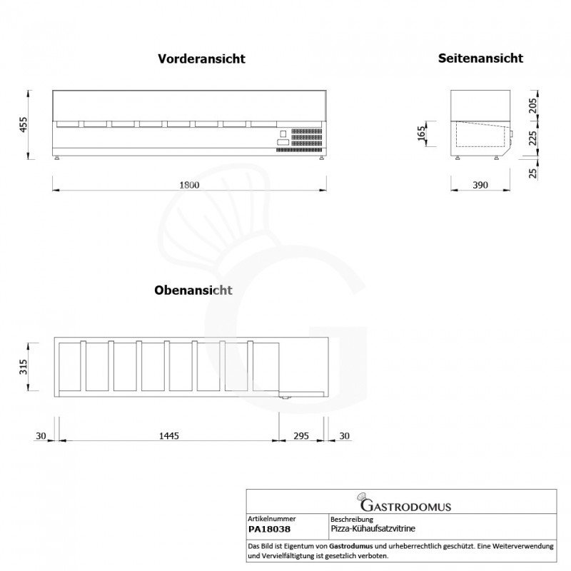 Pizza-Kühlaufsatzvitrine ohne Glasaufsatz: H 250 mm