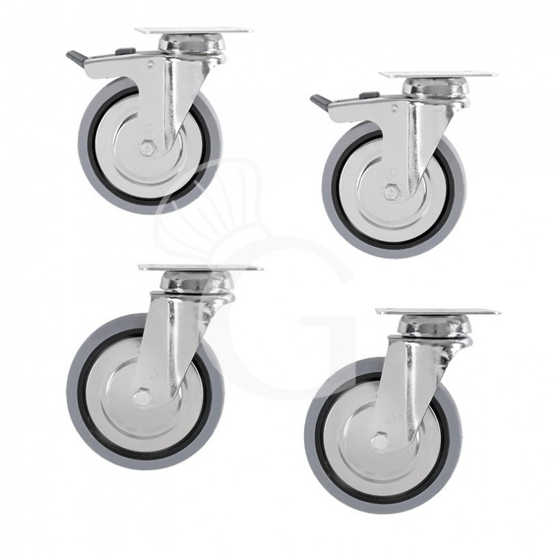 Lenkrollen-Set für Schranktische, 4 Rollen davon 2 mit Bremse Ø 125 mm