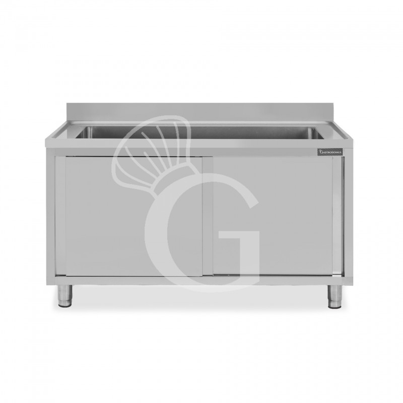 Topf-Spülschrank, Edelstahl, Schiebetüren, 1 Becken, Aufkantung, B 1400 mm x T 700 mm x H 950 mm