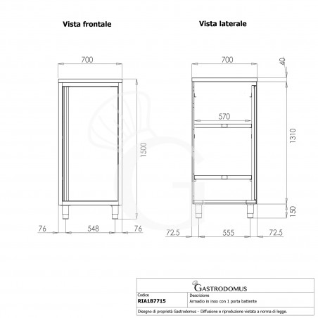 Edelstahl Universalschrank, 1 Flügeltür, 2 Einlegeböden, B 700 mm x T 700 mm x H 1500 mm