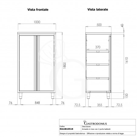 Der Schrank ist aus robustem Edelstahl 18/10 mit Scotch-Brite Schliff.