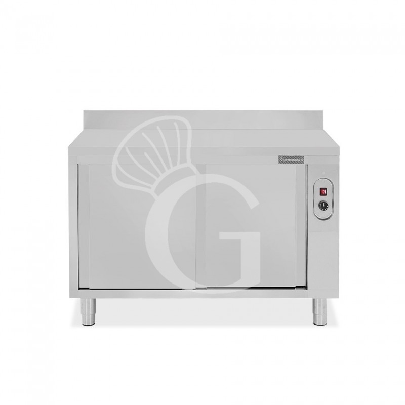 Beheizte Tisch aus Edelstahl mit Schiebetüren und Aufsatz B 1300 mm x T 700 mm x H 950 mm