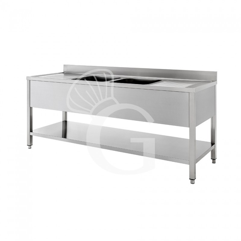 Edelstahl – Spültisch – Grundboden – Aufkantung – 2 Becken – 2 Ablagen – B 2200 mm x T 600 mm x H 950 mm