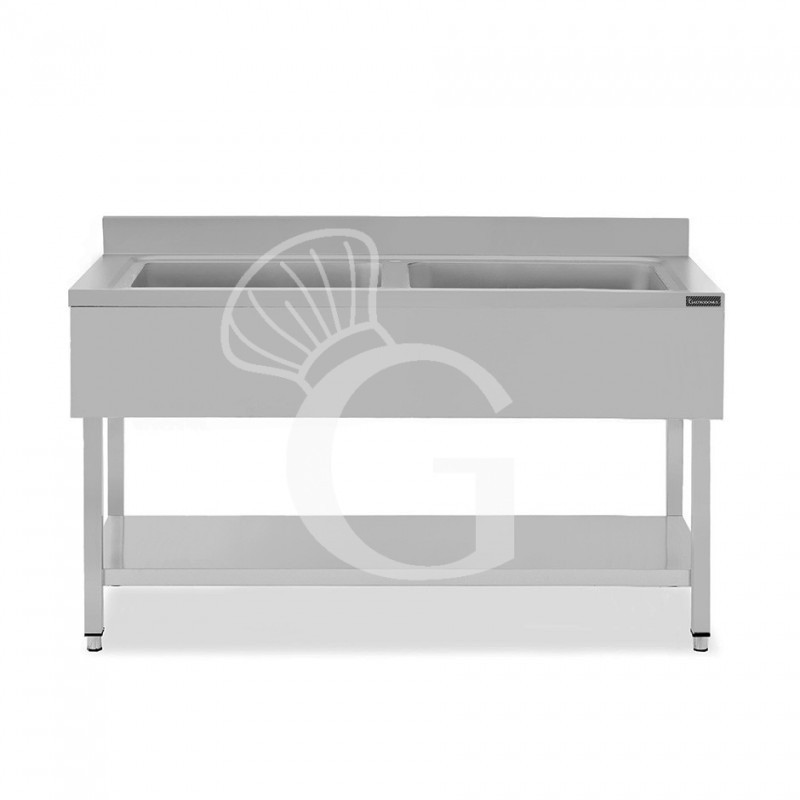 Spültisch, Edelstahl, 2 Becken, Grundboden, Aufkantung, B 1600 mm x T 600 mm x H 950 mm